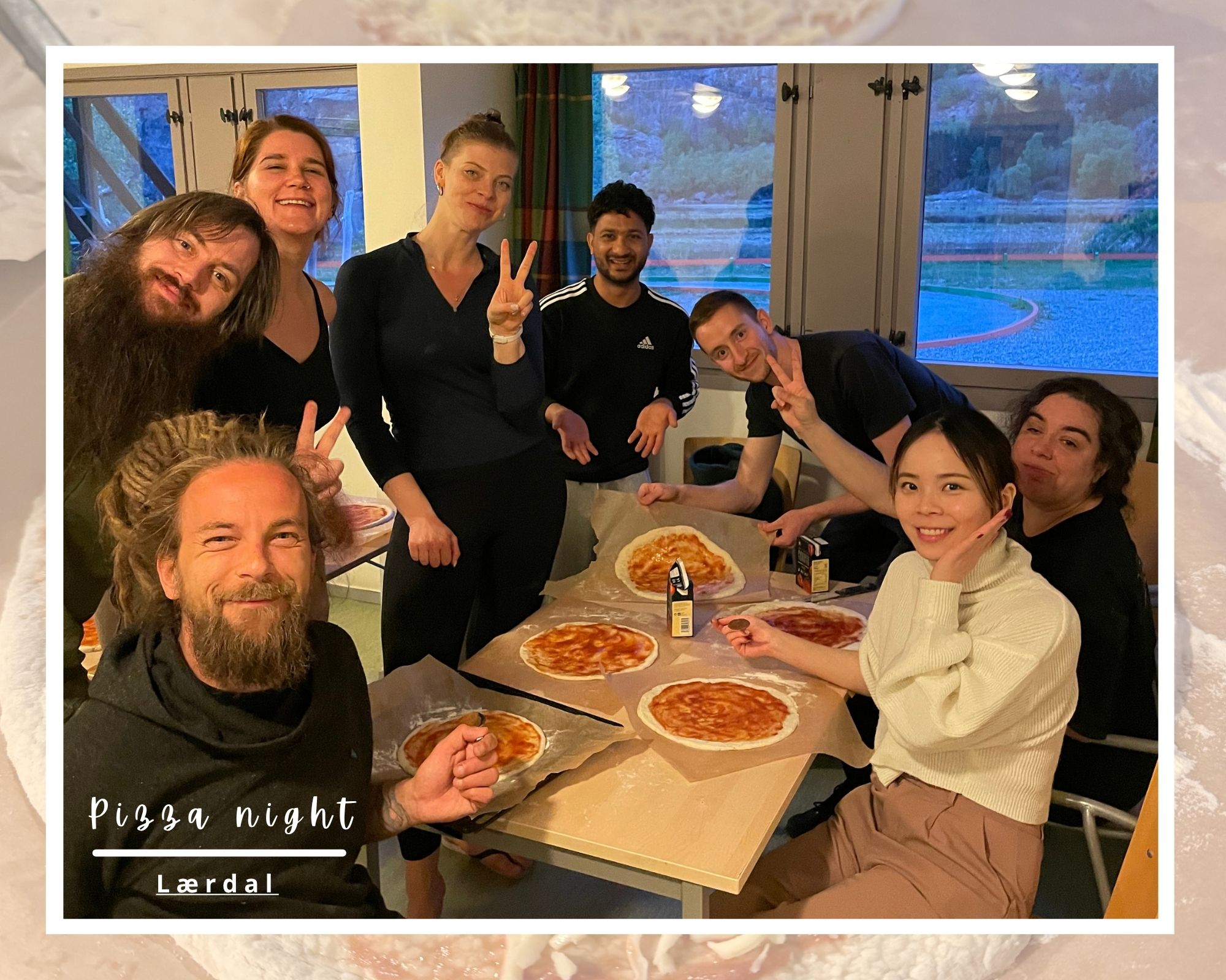 We turned the shared kitchen at Lærdal Feriepark into our own little pizzeria. Our Italian teachers rolled out the dough from scratch (yes, absolute pros!), and we each got to choose our own toppings.